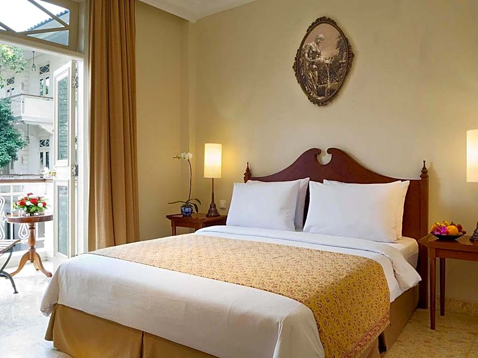 This spacious, air-conditioned room features a flat-screen TV and private balcony with views of the pool or garden. Each has a separate living room with a mini-bar, espresso machine, and a free fruit basket.